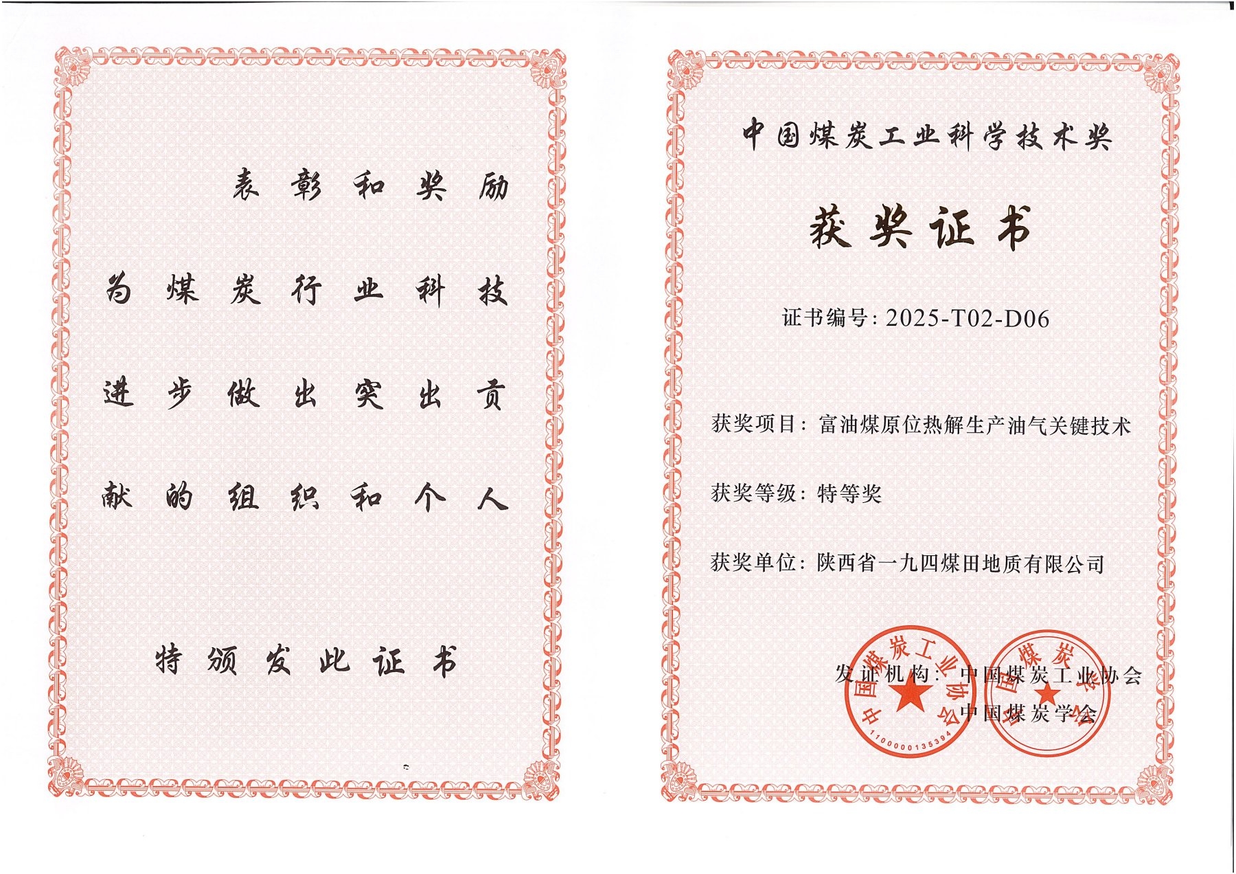 喜报!一九四公司参与的富油煤项目斩获中国煤炭工业科学技术特等奖